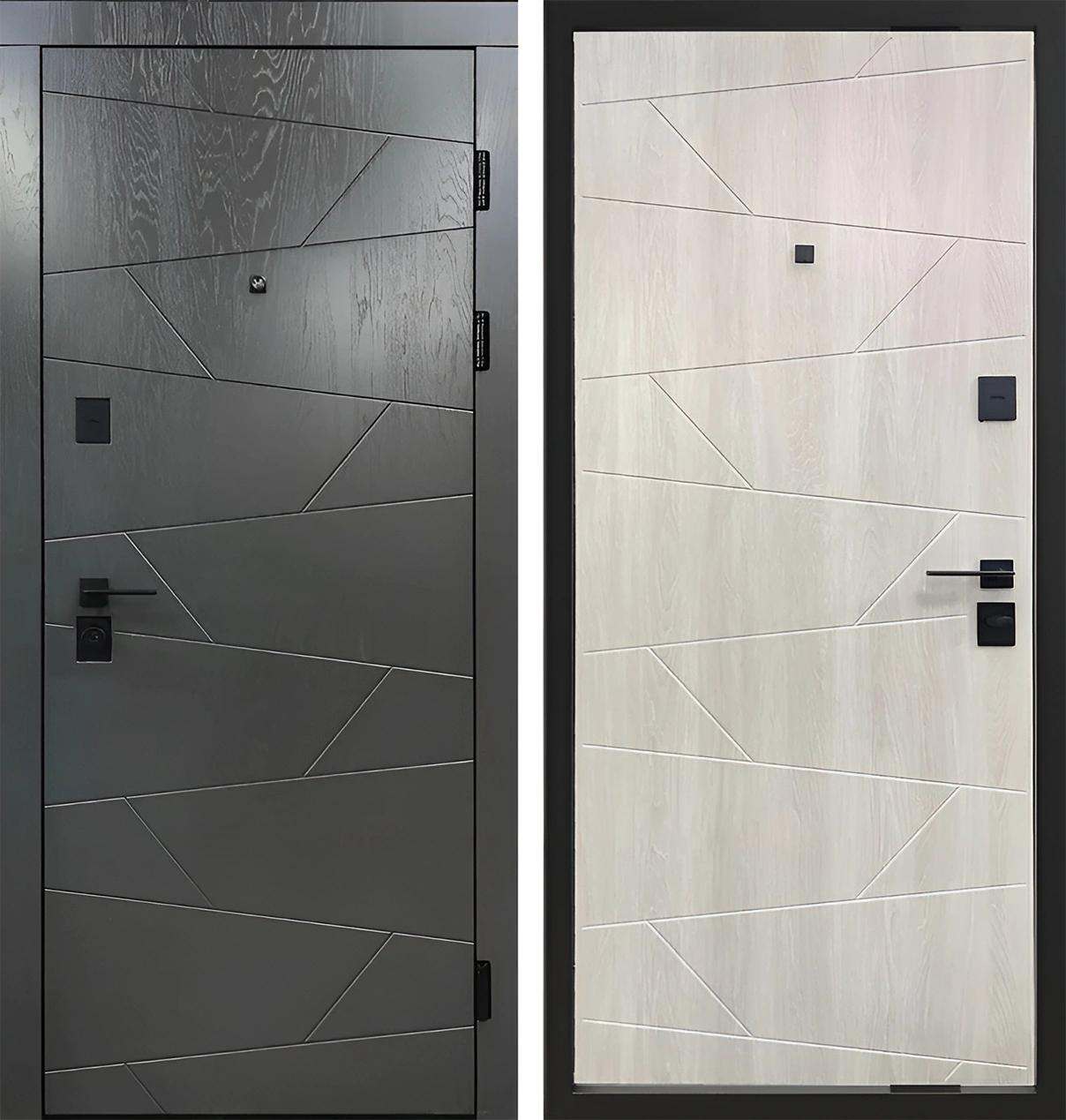 Входная дверь МДФ «Уровни» Графитовый серый глянец Ангора