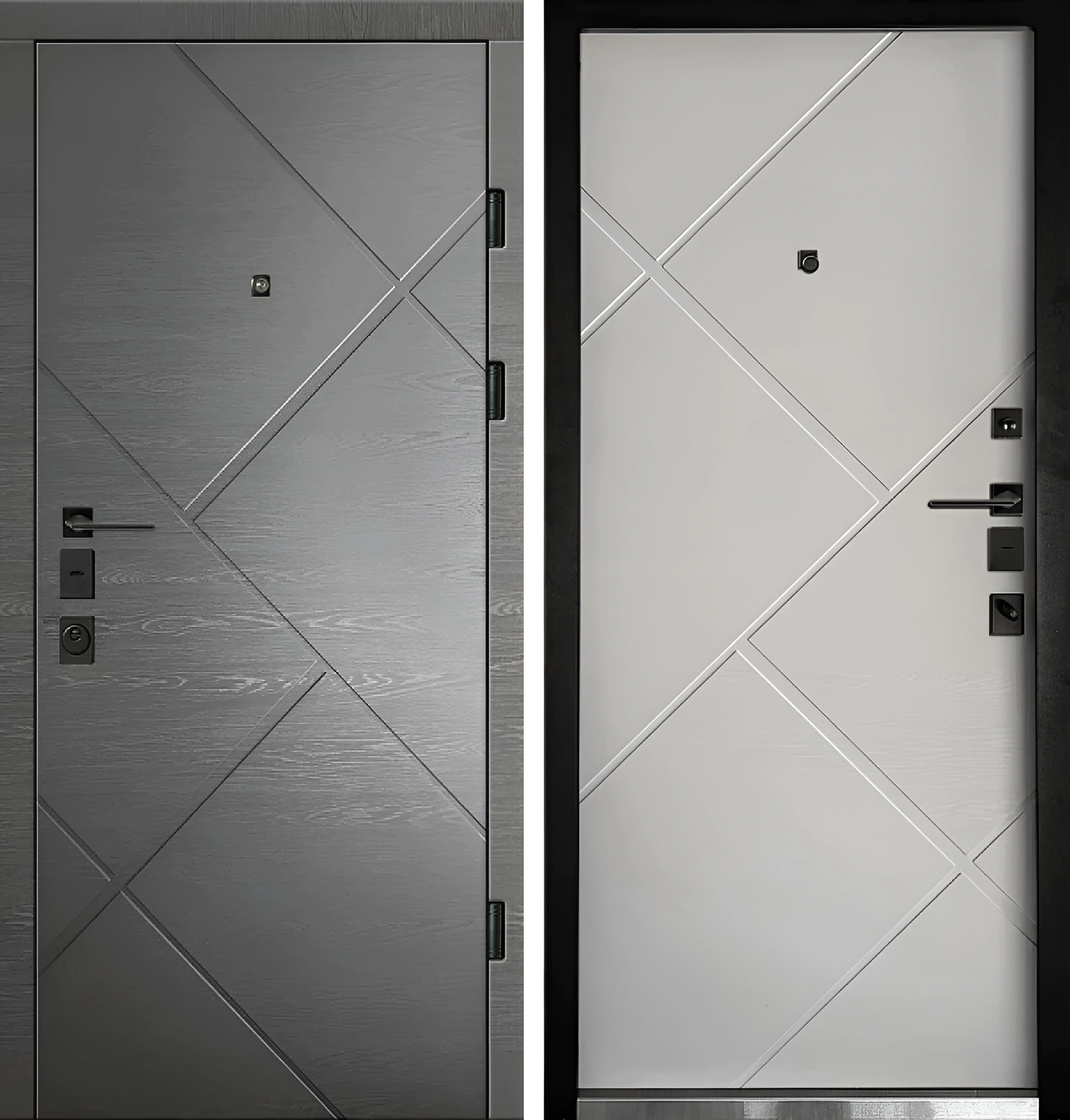 Входная дверь с МДФ-панелями «Расширение» Ясень Капучино Платиновый
