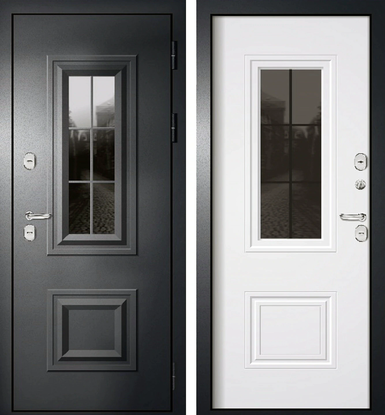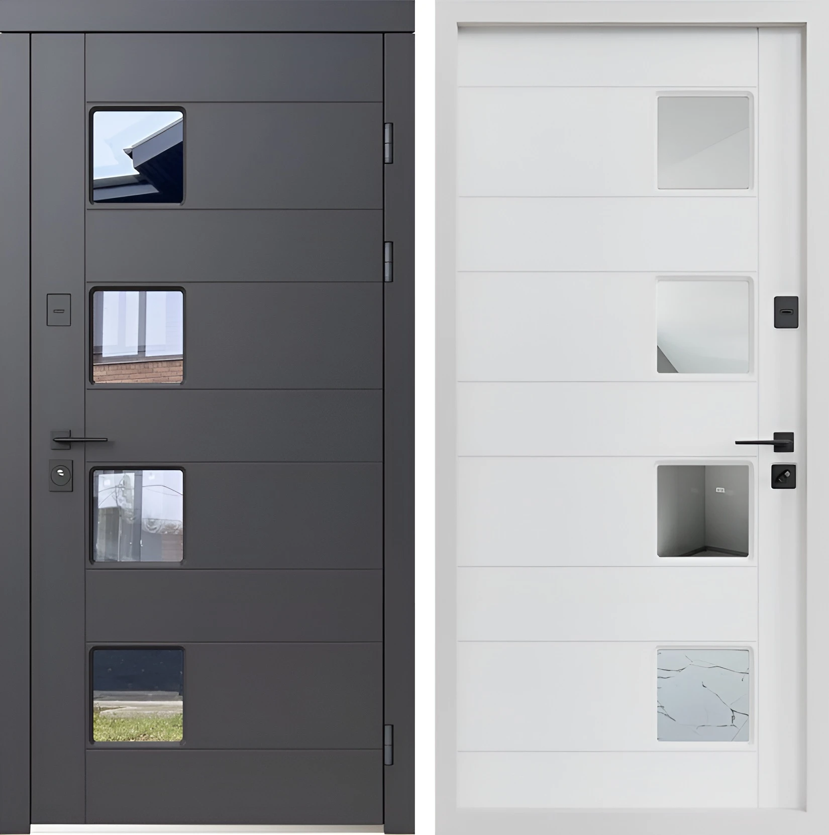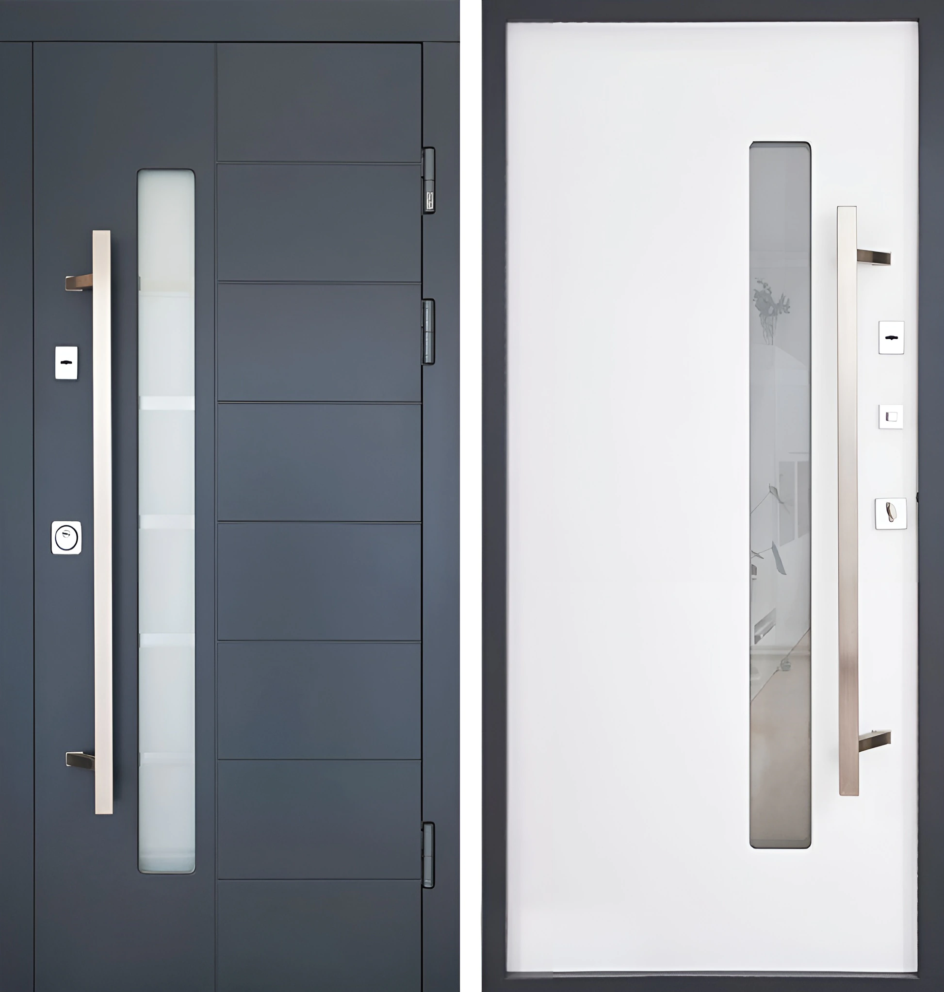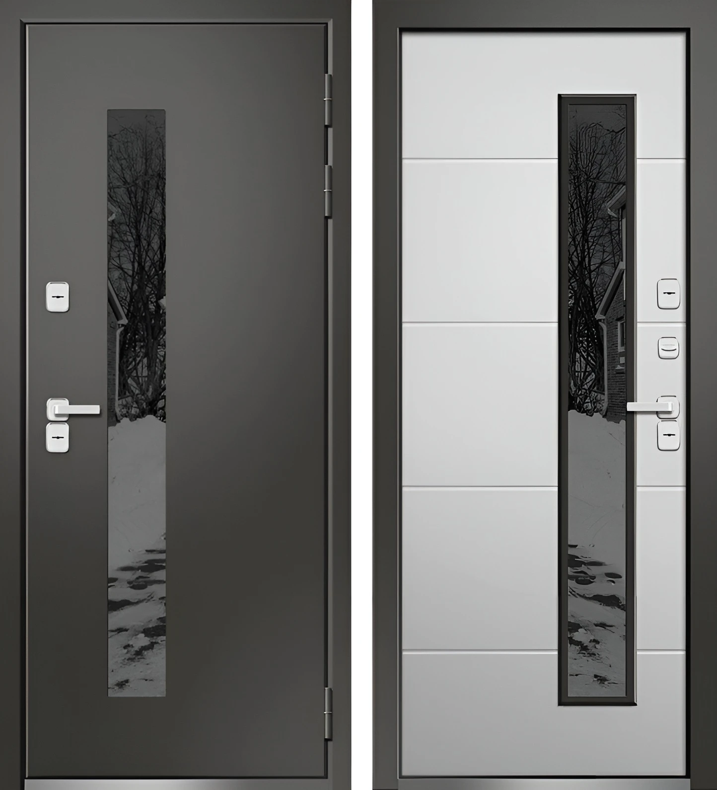 Входная дверь с витражным стеклом МДФ Мокрый асфальт Дуб белёный с терморазрывом