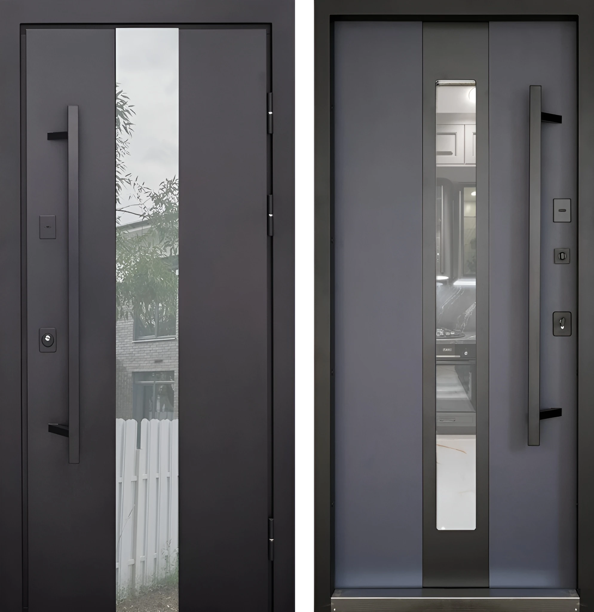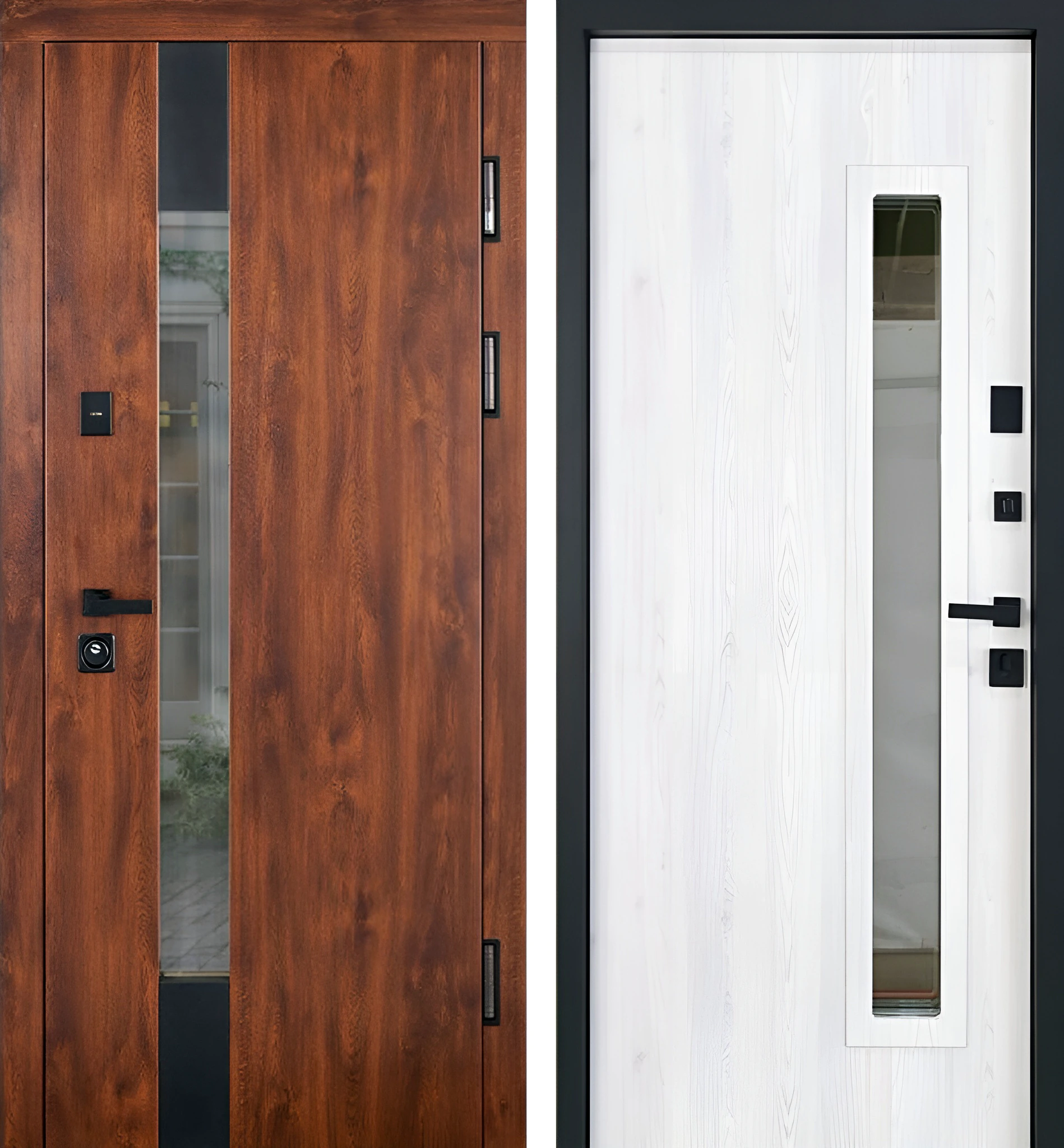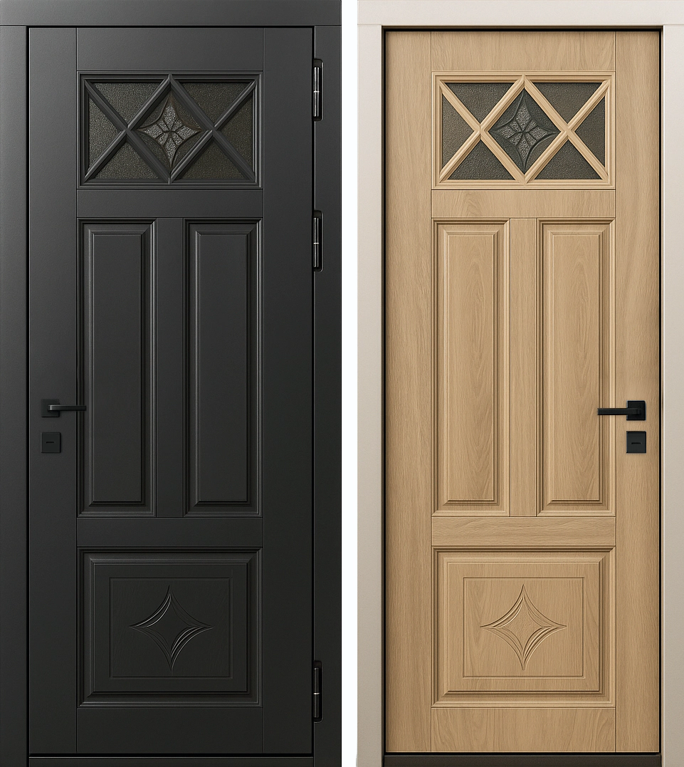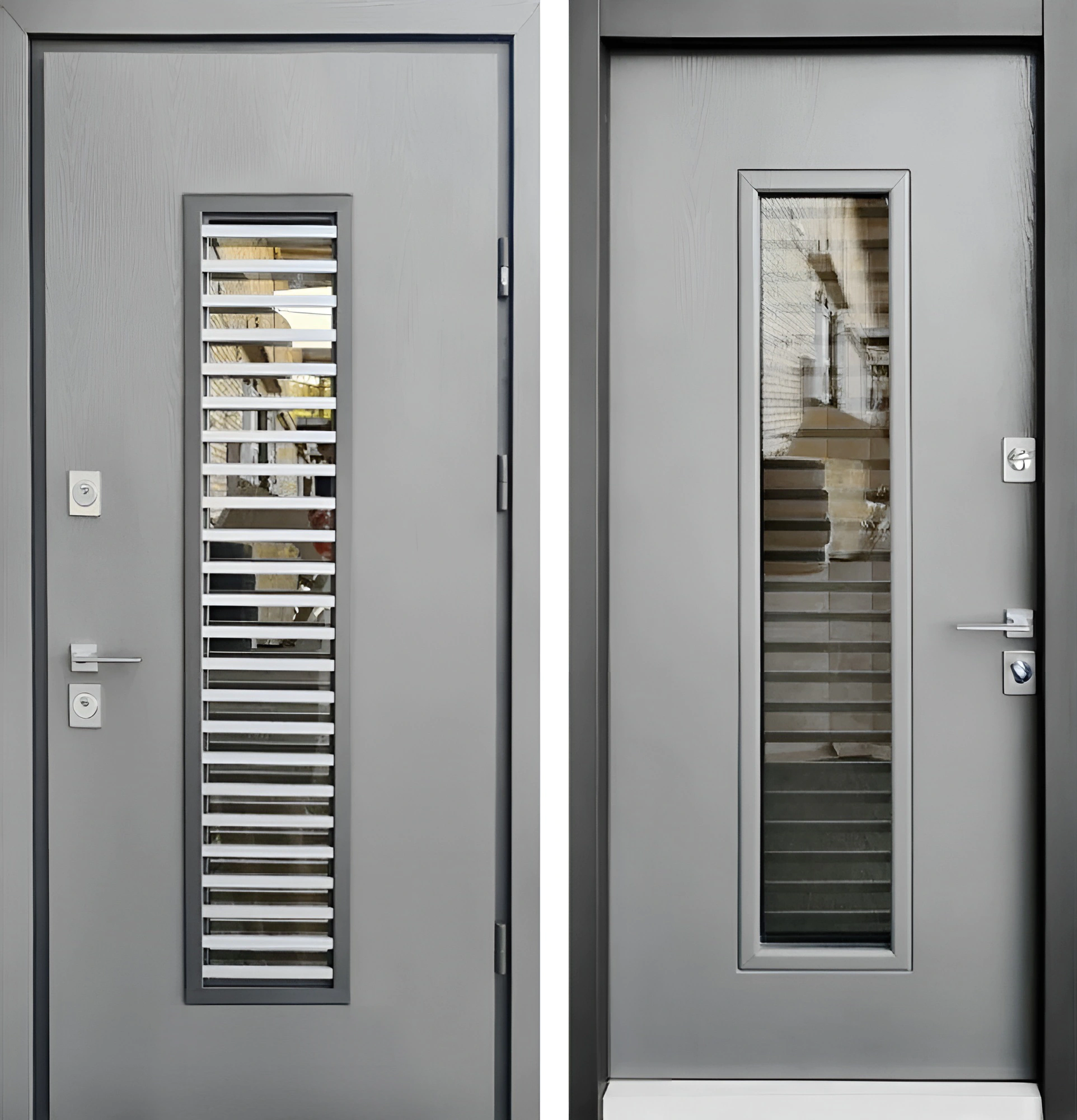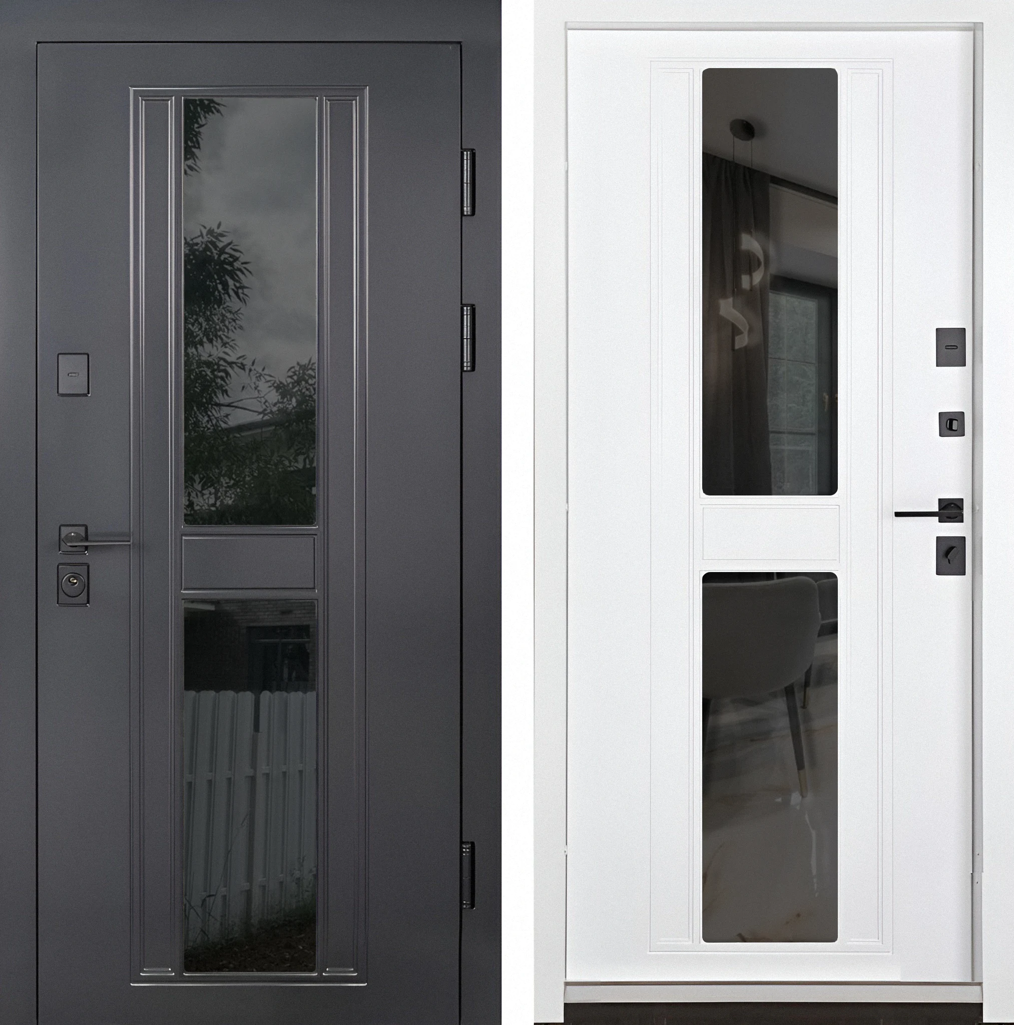 Входная дверь с витражным стеклом МДФ Мокрый асфальт Дуб белёный с терморазрывом