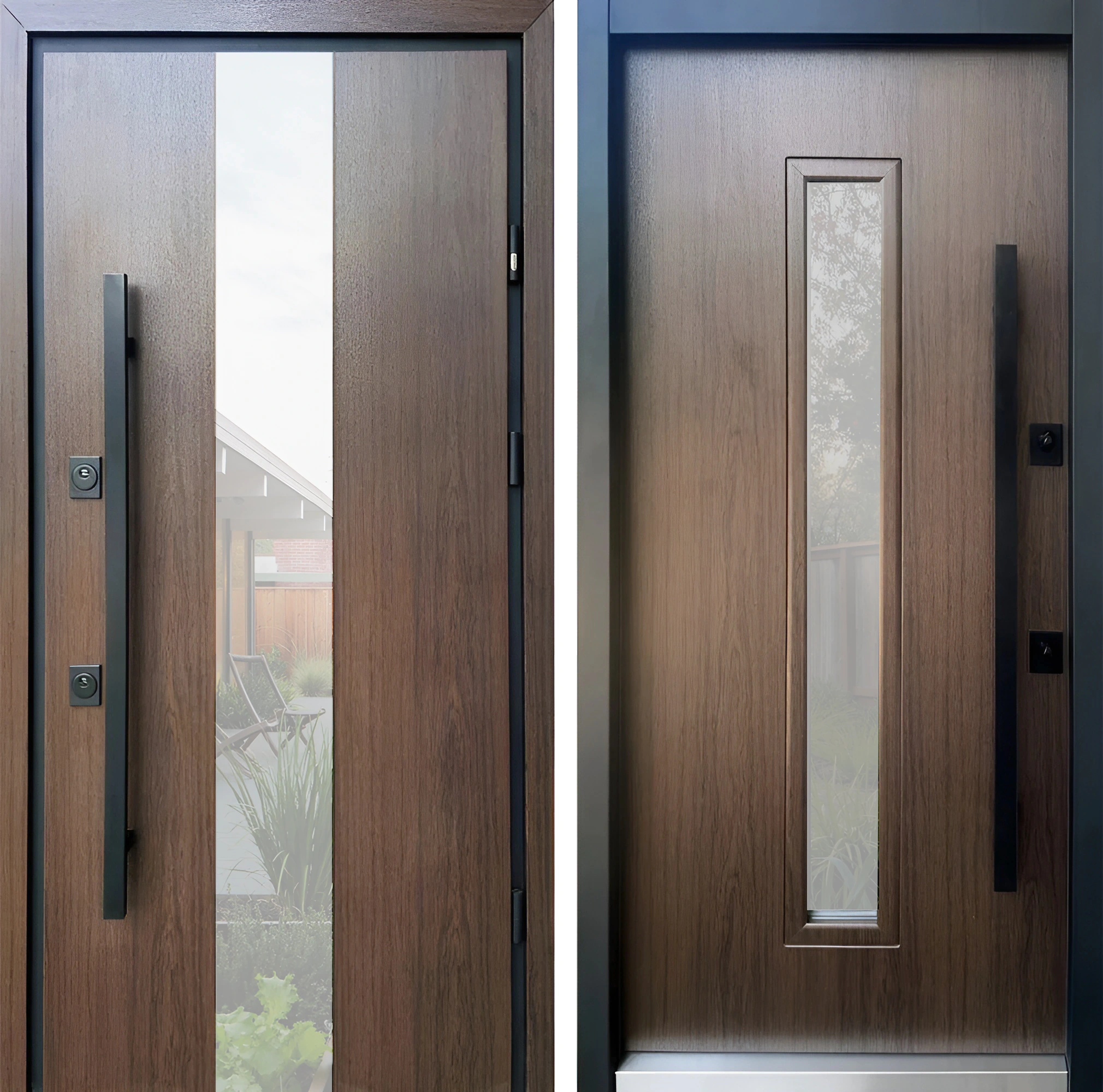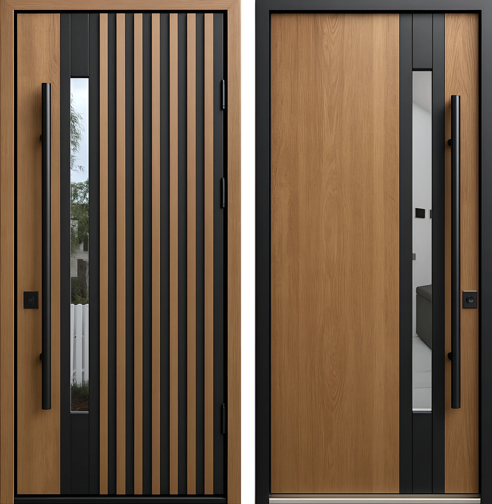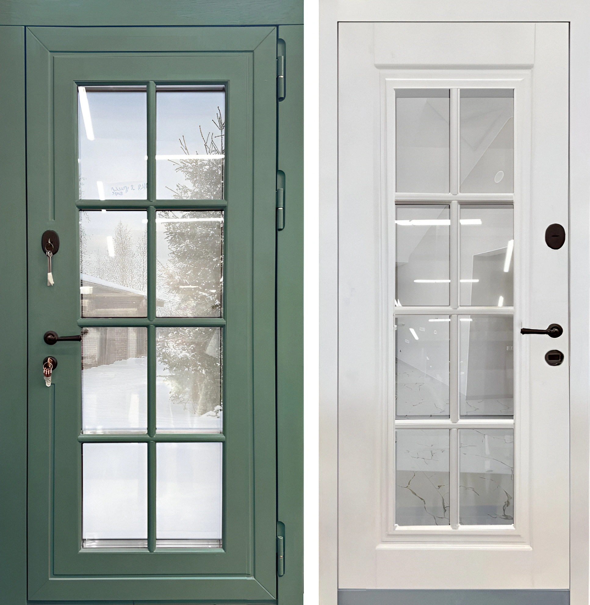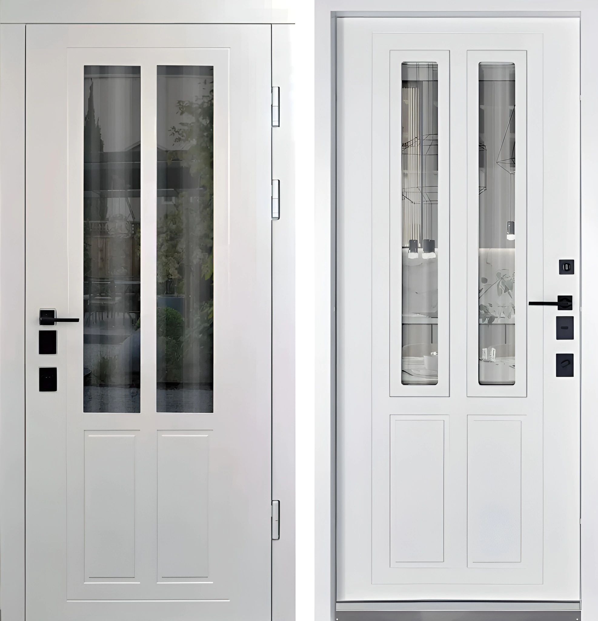 Входная дверь с витражным стеклом МДФ Мокрый асфальт Дуб белёный с терморазрывом