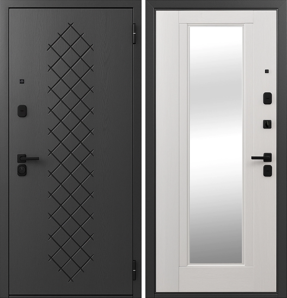 Морозостойкая входная дверь с фрезерованным МДФ и зеркалом Угольный Речной Перламутр
