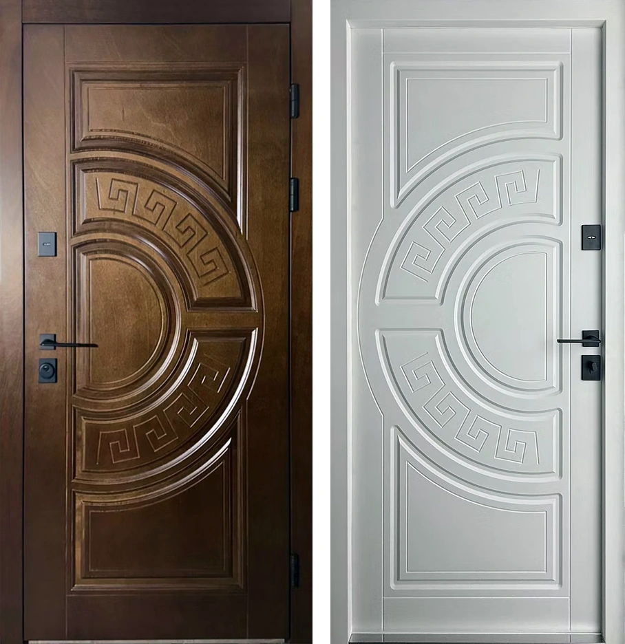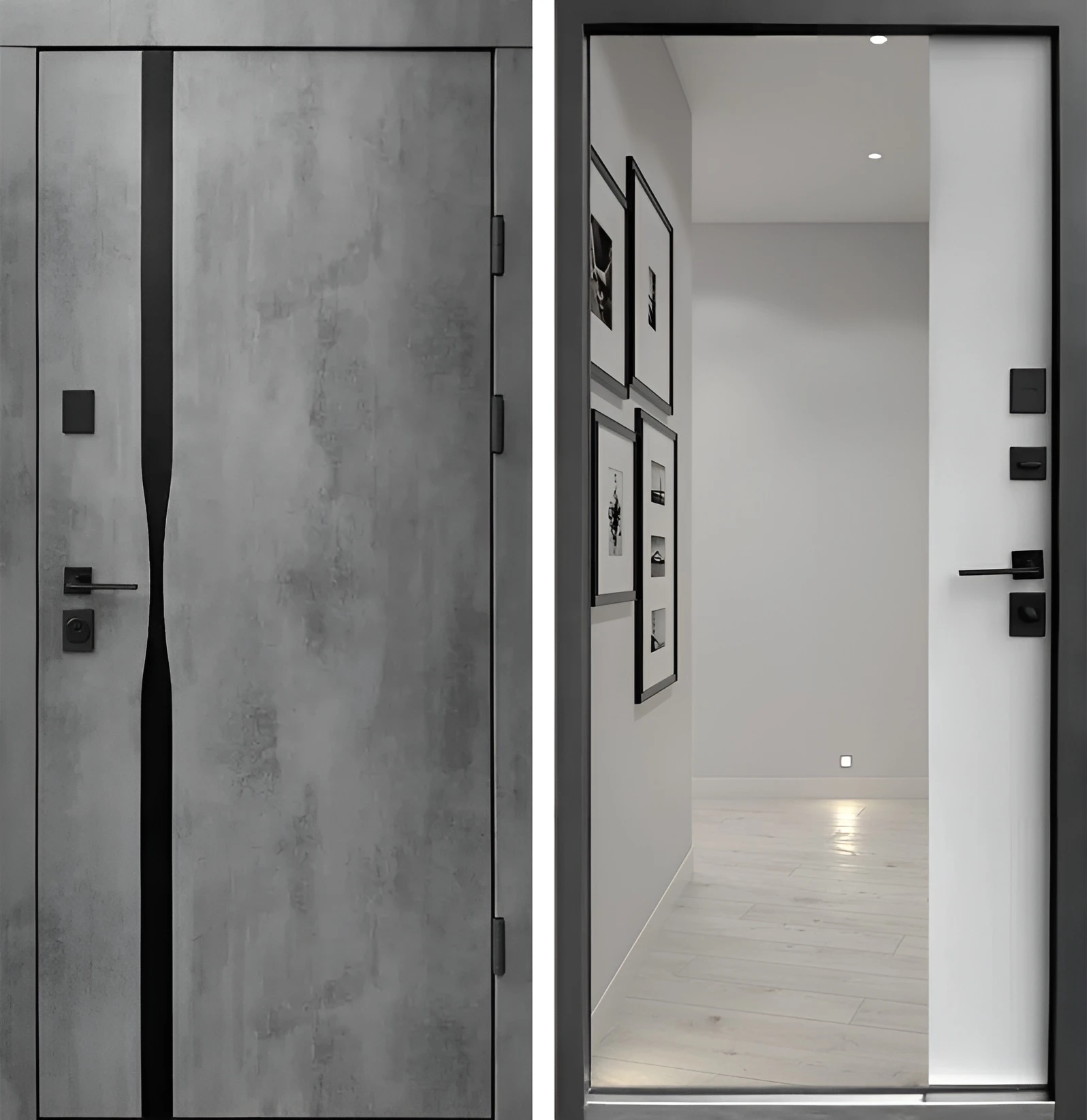 Входная дверь в стиле Лофт с большим зеркалом внутри и матовым молдингом с терморазрывом