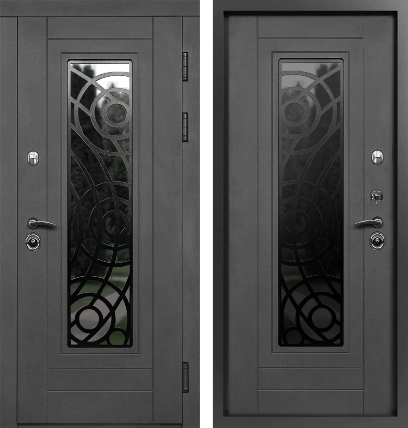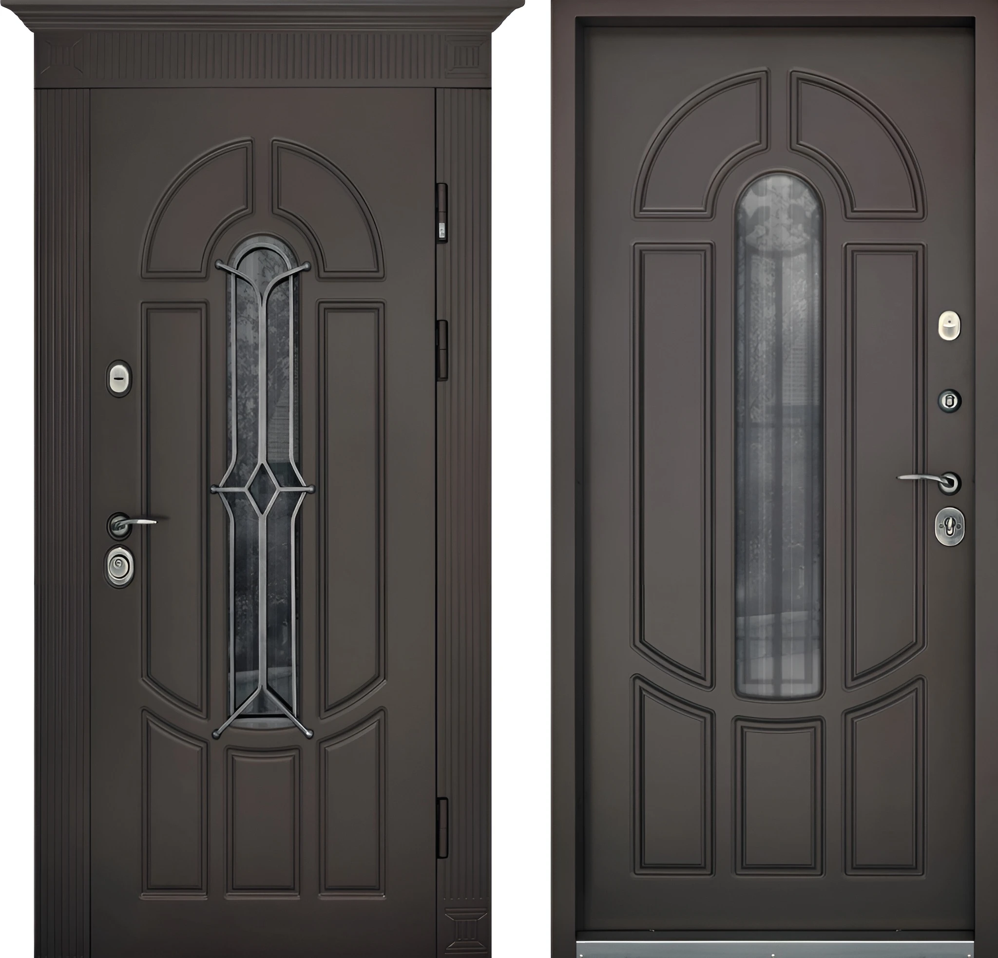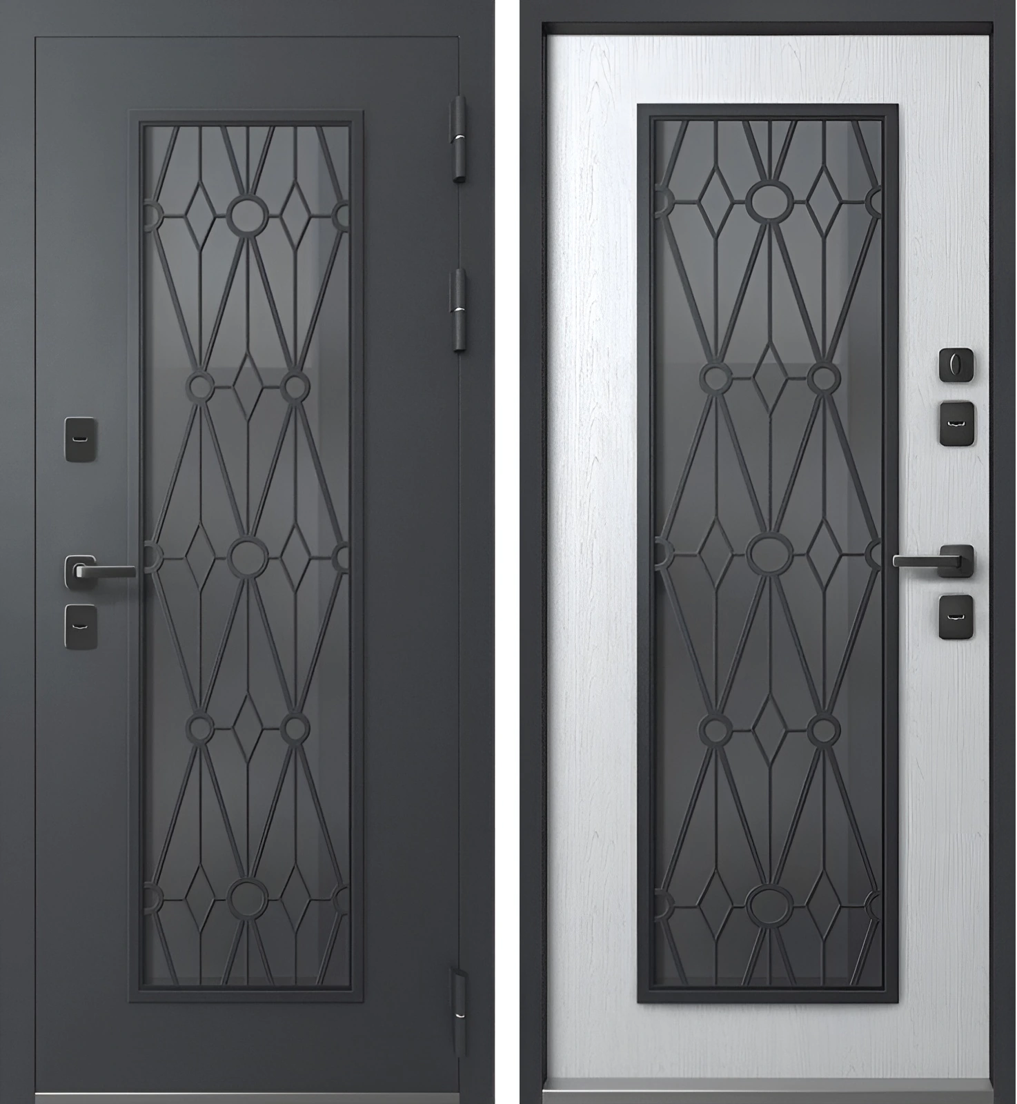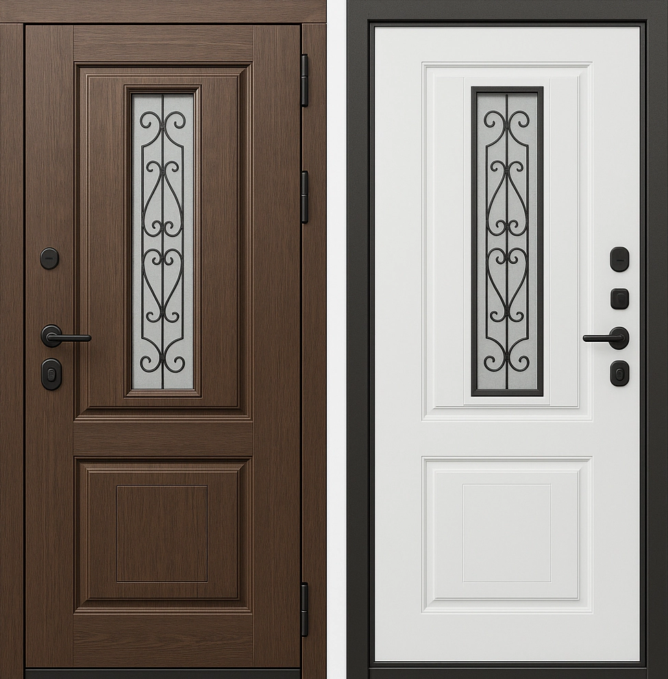 Входная дверь со стеклопакетом и кованым узором МДФ Тиковое Дерево Жасмин морозостойкая