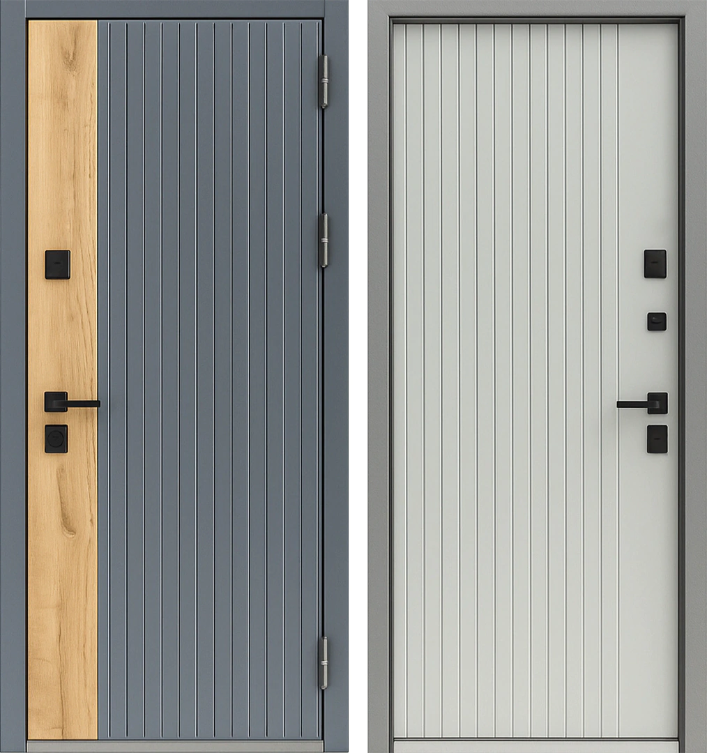 Входная дверь хай-тек комбинированный МДФ гладкий Грифельный Дымчатый Белый с терморазрывом