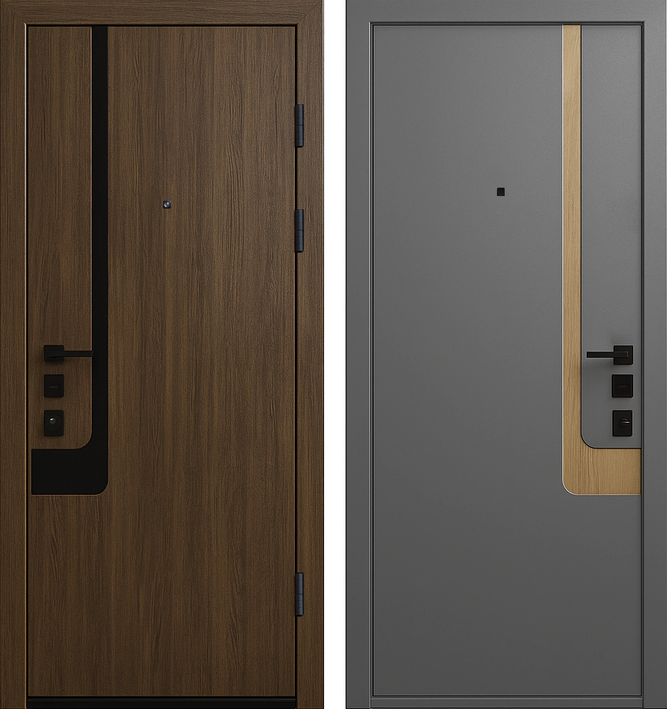 Входная дверь модерн с молдингом МДФ комбинированный Орех Стальной гладкий терморазрыв