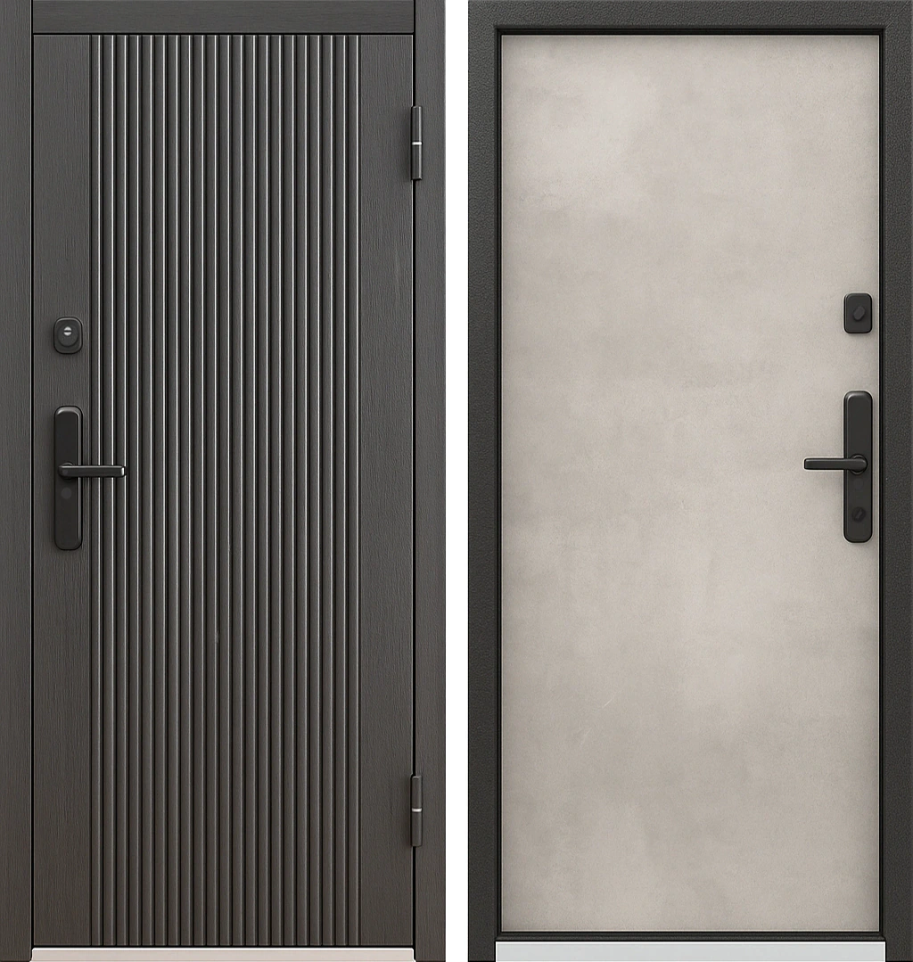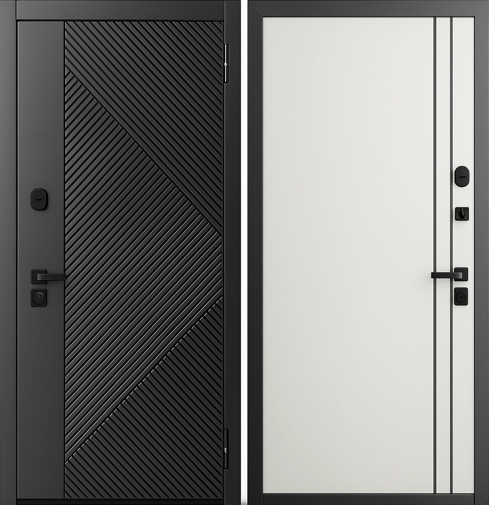 Стальная входная дверь терморазрыв МДФ геометрия рекурсия Оникс Белый дым с молдингом