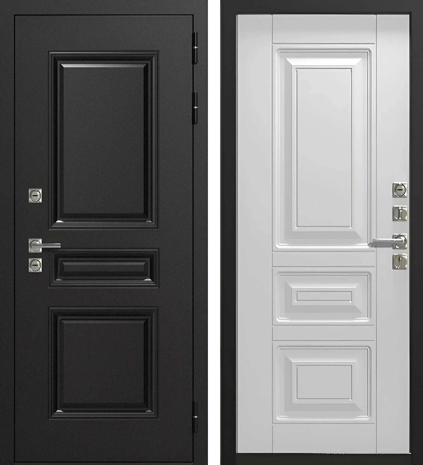 Морозостойкая Стальная входная дверь с порошковым окрашиванием и МДФ-плитой внутри Чёрно-белый металлофилёнка