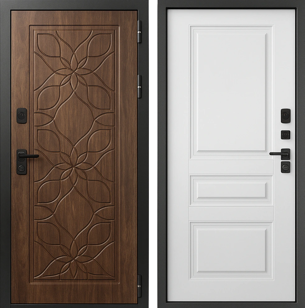 Входная дверь терморазрыв МДФ «Цветочный» Орех Американский Белый