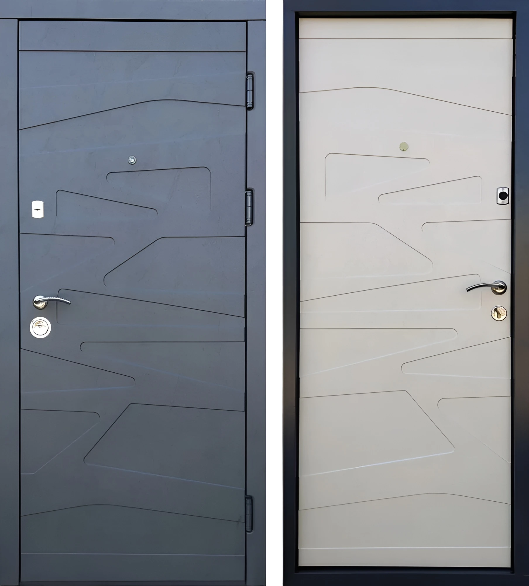 Входная дверь морозостойкая с МДФ «Хаотичная геометрия» объёмный Маренго Кремовый Серый