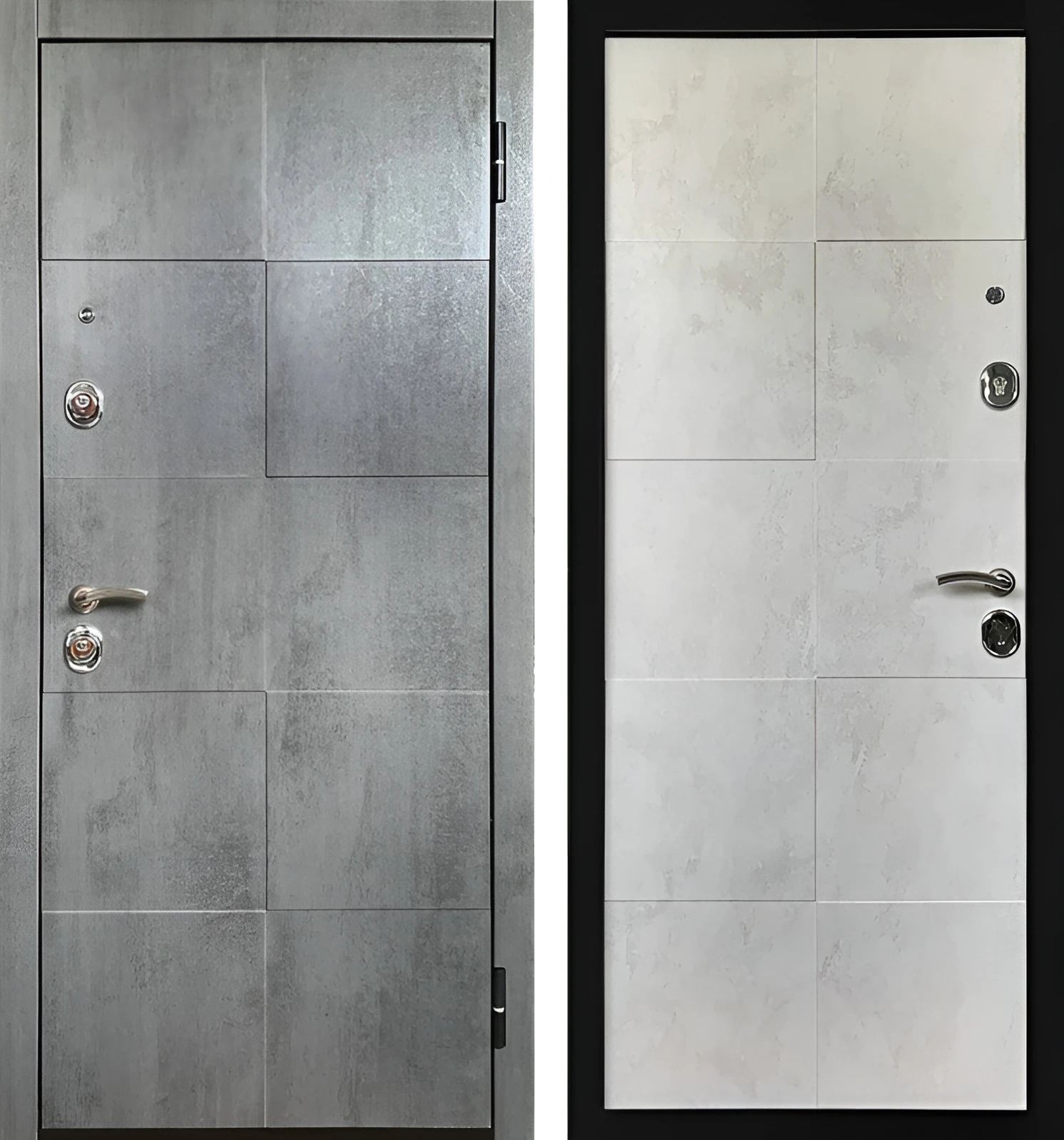 Входная дверь Лофт-стиль МДФ фрезерованный Серый Металлик Серо-бежевый